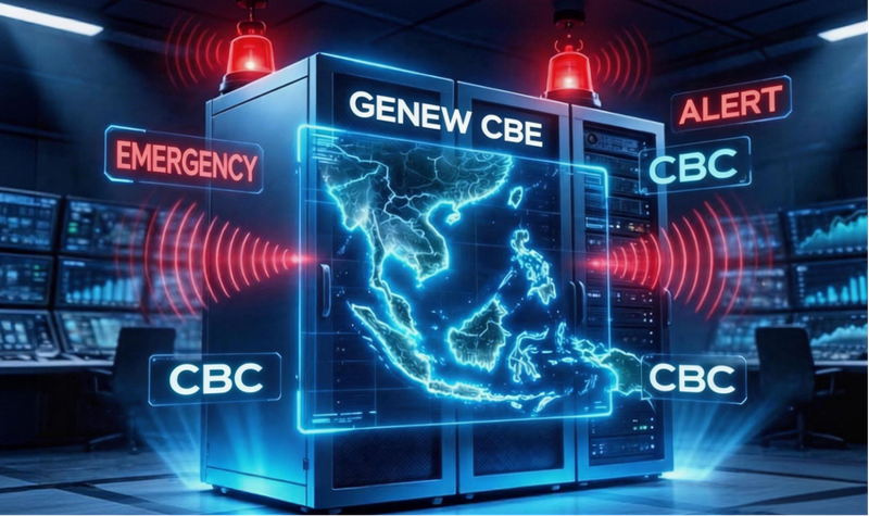 GENEW CBE (Cell Broadcast Entity) serves as the unified entry and generation platform for warning information, interfacing upward with various government alerting agencies and downward with the Cell Broadcast Centres (CBCs) of Mobile Network Operators (MNOs). This enables centralized management, precise targeting, and reliable distribution of warning messages.